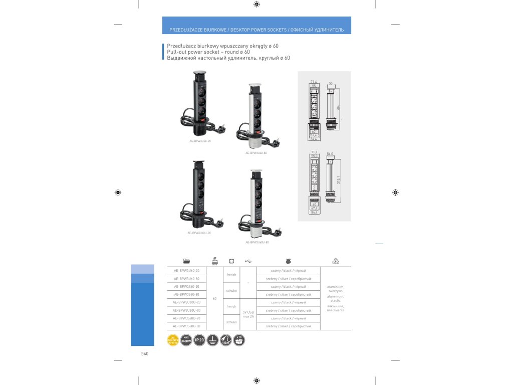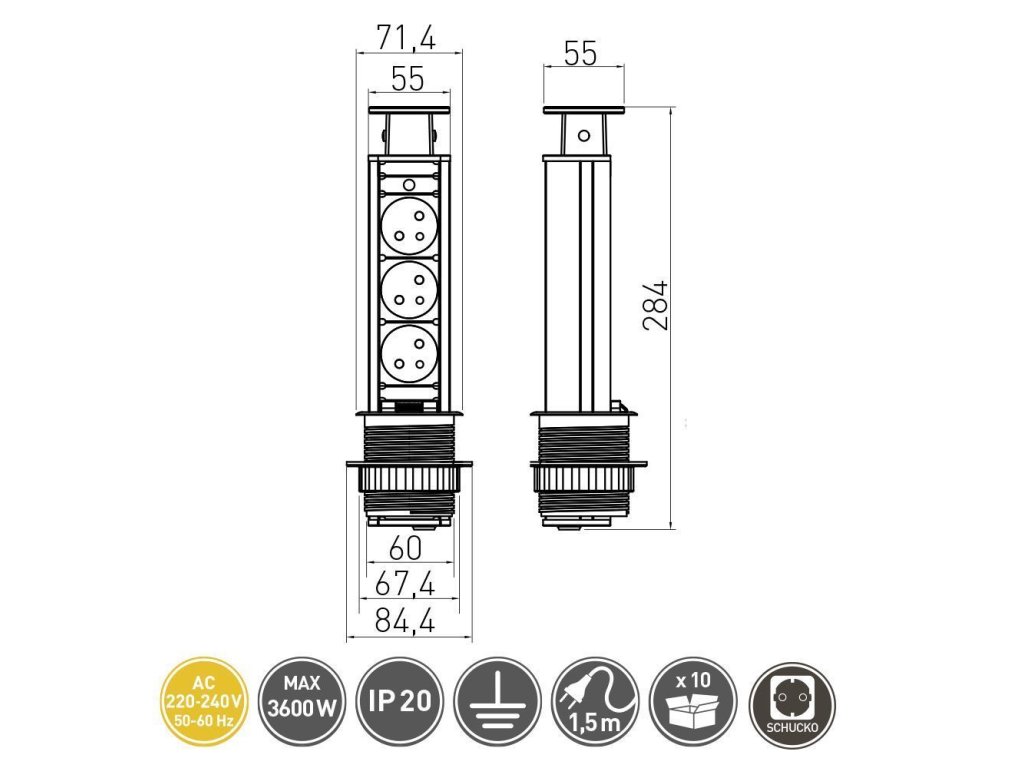 Charakteristika produktu výsuvná zásuvka do kuchyně GTV 3 x 220 V, kabel 1,5m černá