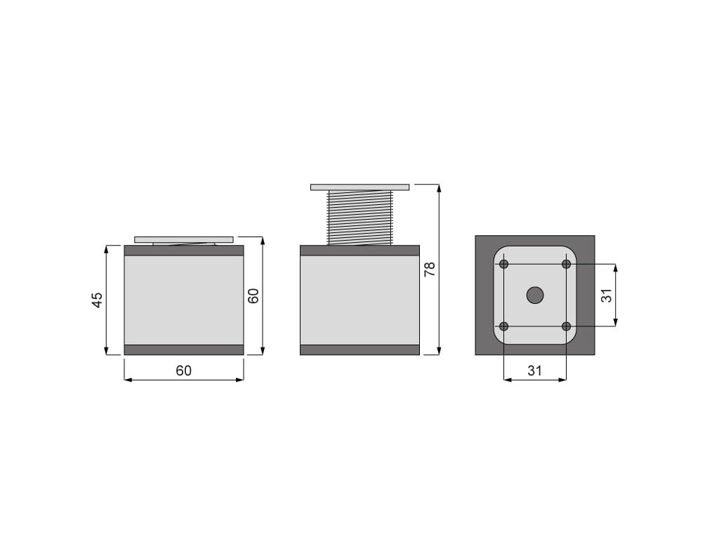 Nábytková noha BIG 60x60 H60 štvorcová A2 chróm
