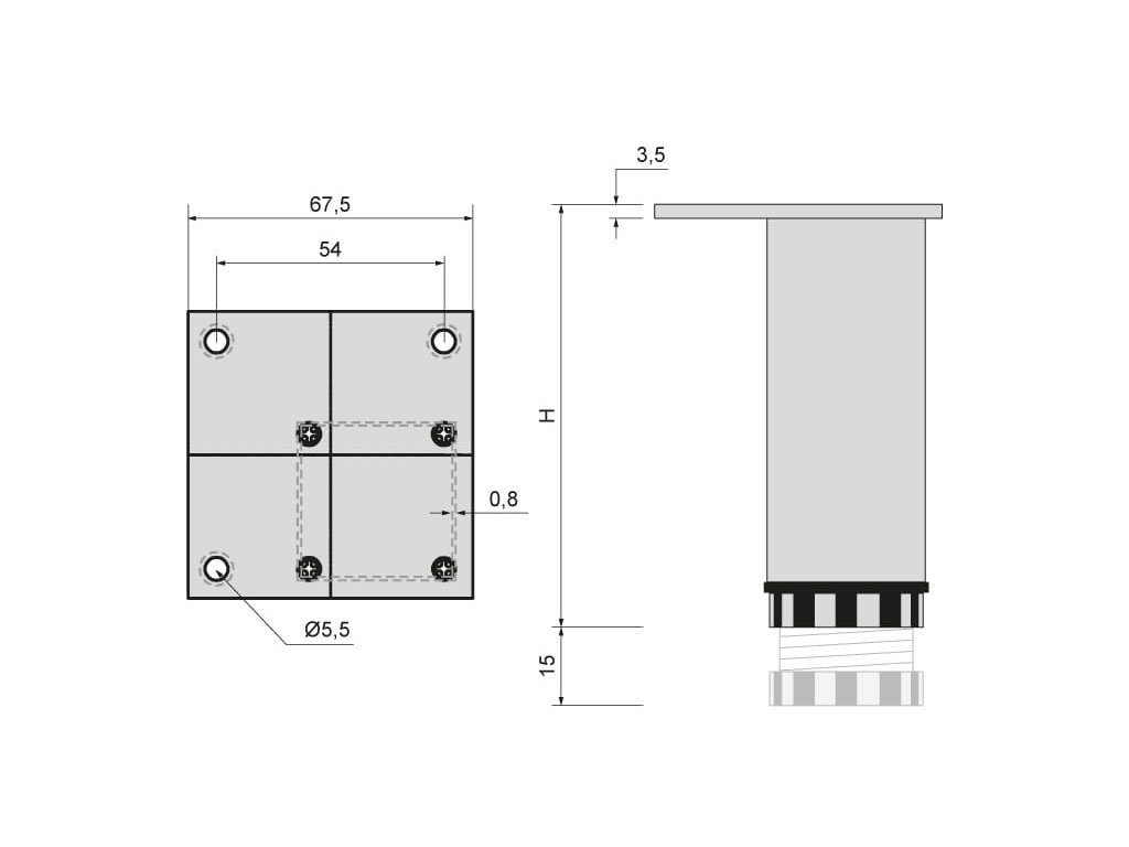Nábytková noha vhodná na postele alebo nábytok na odpočinok.