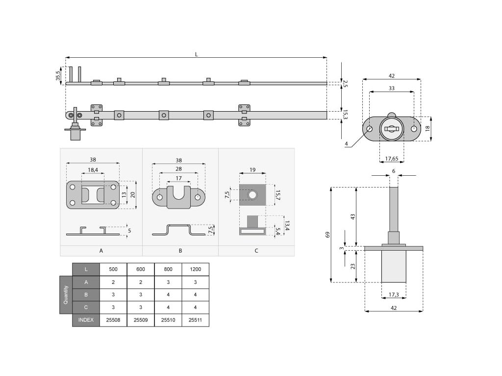 • Dĺžka tyče: L-500