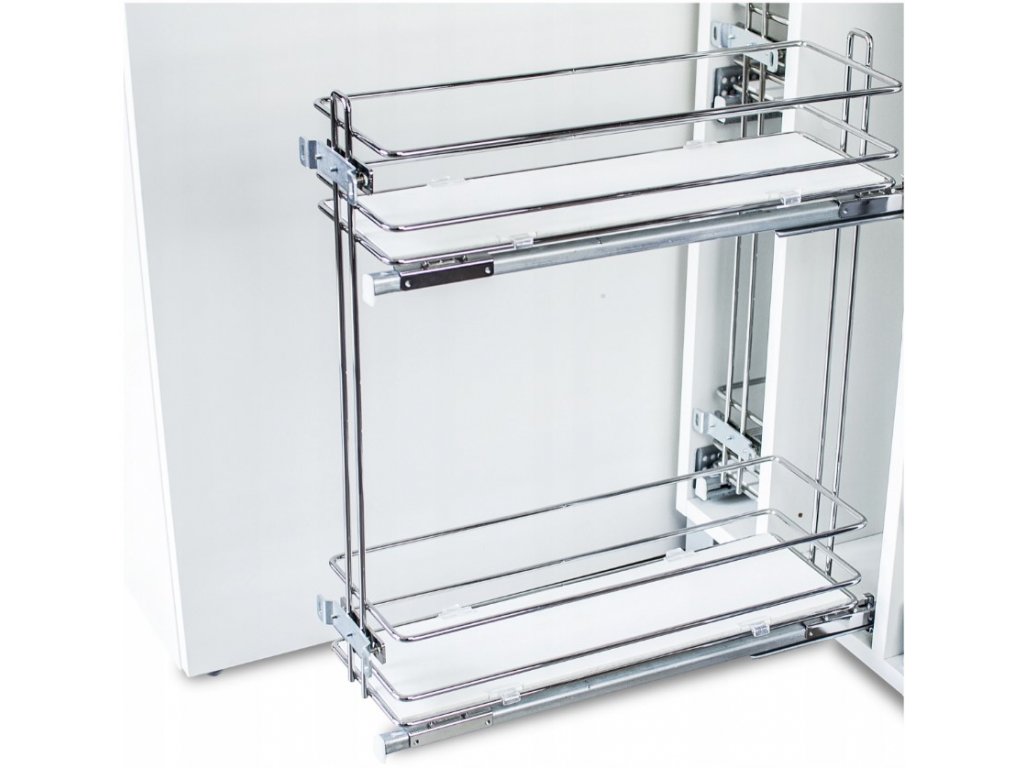 Výsuvný drôtený kôš pre kuchynské skrinky spodný výsuvný 300 - 600 mm Vyrobené v Taliansku chróm pre kuchynské skrinky je obľúbeným riešením pre kuchynský drôtený program. Silná prášková farba chráni kôš pred koróziou a dodáva mu úžasný vizuálny efekt. Úplný spodný výsuvný drôtený kôš spodný výsuv poskytuje ešte lepšie využitie priestoru skrinky.